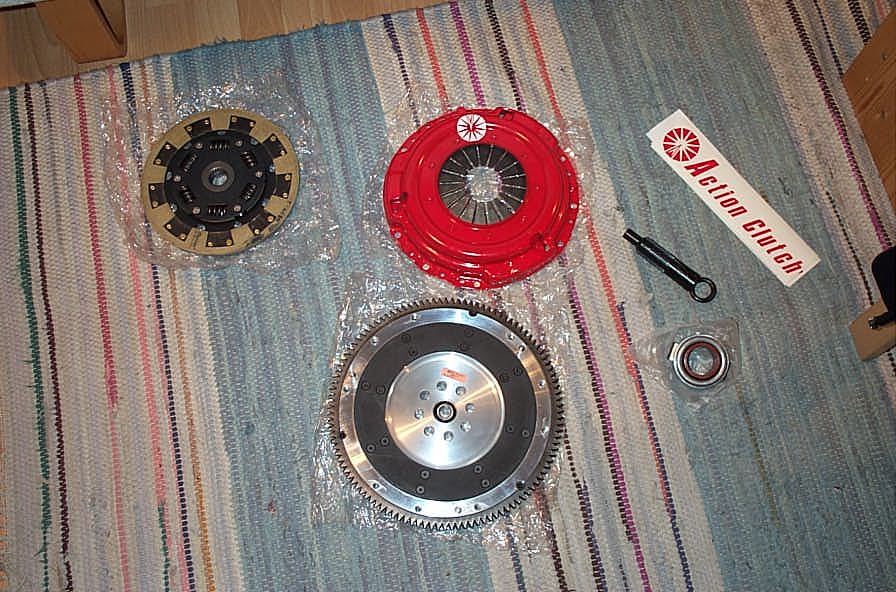 altså. Så den nye clutchen veier samlet 3,2kg mindre enn den originale.